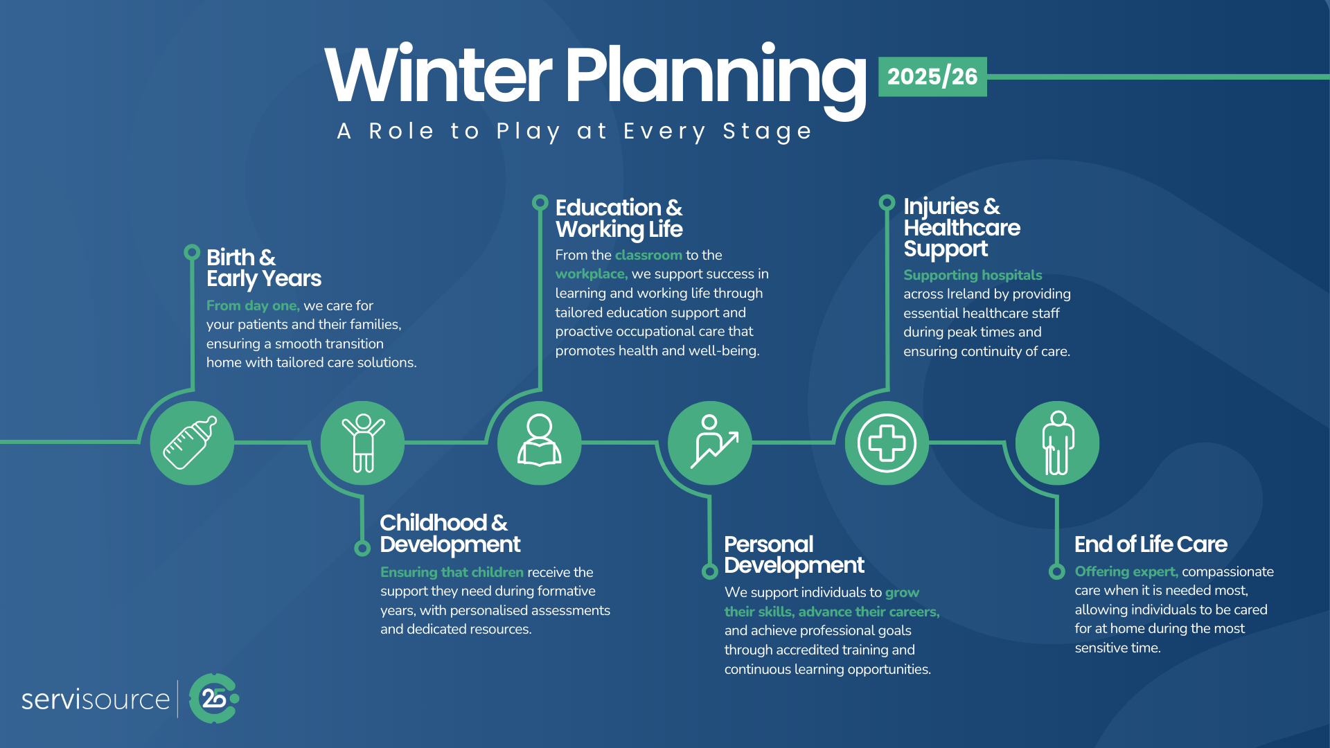 As we enter the 2025 winter season, Servisource proudly celebrates 25 years in business, a milestone that reflects our unwavering commitment to supporting the Irish healthcare system. For a quarter of a century, we have been there at every stage, partnering with the HSE and healthcare providers nationwide to ensure that safe, continuous care is delivered when it is needed most.